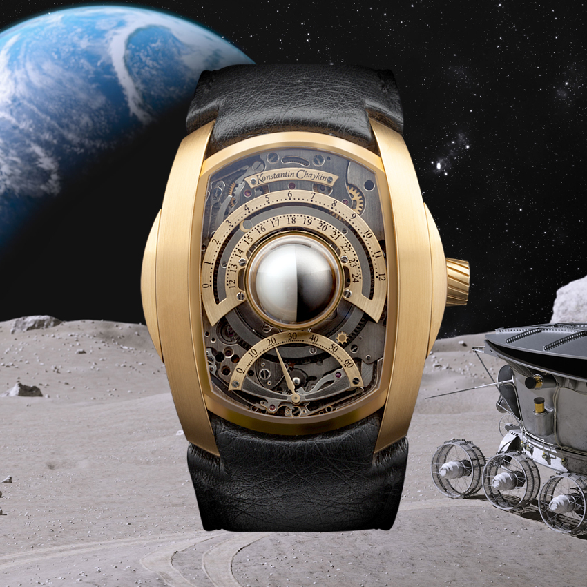 Задумывая часы «Луноход Прайм» (Lunokhod Prime) с корпусом из 18-каратного розового золота, Константин Чайкин решил сделать драгоценной и лунную сферу этих часов. Материалом стала чудесная 12-миллиметровая жемчужина южных морей, отобранная Константином Чайкиным из сотен претенденток за выдающуюся сферичность – найти натуральную жемчужину идеальной сферической формы практически невозможно. Также практически невозможно найти иной пример из истории часового дела, когда жемчуг бы использовался в часовой механике в качестве функционального элемента. Подробнее о часах «Луноход Прайм» на сайте chaykin.ru