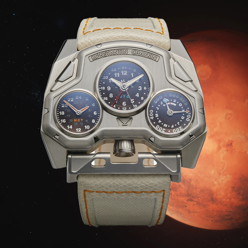 Космические корабли, способные доставить человечество на Марс, ещё только разрабатываются, а изобретённые российским мастером часы для покорителей Марса уже готовы. Часы «Марс Конкверор Марк 3 Файтер» изготовлены из титана, традиционно воспринимаемого как материал авиационный и космический. Стрелки циферблата осуществляют синхронизированную индикацию марсианского и земного времени, Константин Чайкин предлагает считать это символом того, что в будущем, после покорения Марса, других планет и звёздных систем, человечество сохранит единство и нежную ностальгическую привязанность к родной планете. Подробнее о часах «Марс Завоеватель мк3» на сайте chaykin.ru